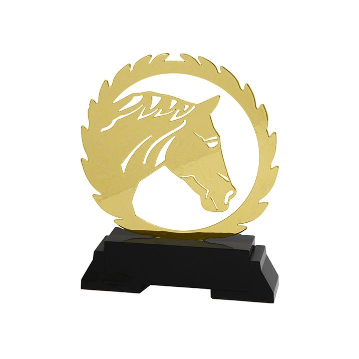 Deze paarden trofee is speciaal gemaakt voor de paardensport. In de trofee staat een paardenhoofd afgebeeld. Op de voet van de trofee kan een tekstplaatje worden geplaatst. Hiervoor kan een eigen tekst worden doorgegeven die op het plaatje gedrukt zal worden.