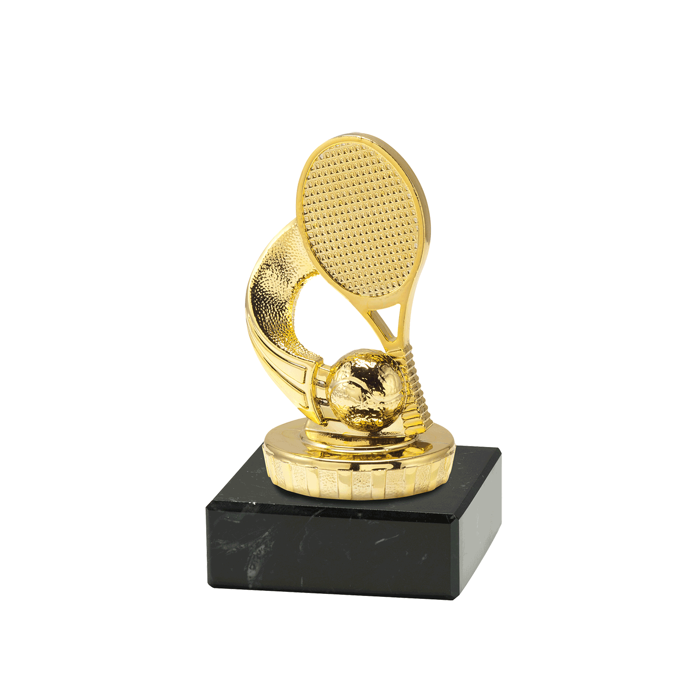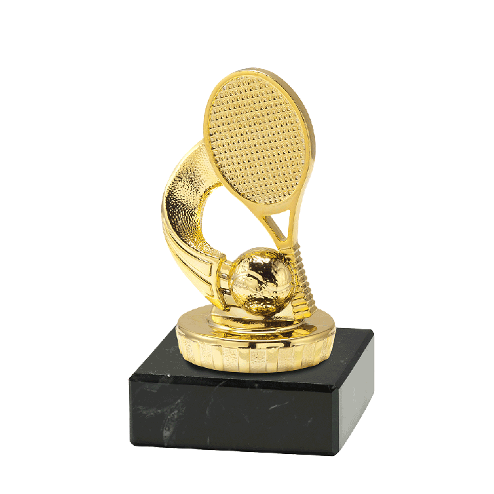 Deze gouden tennis trofee, heeft Budgettrophy direct uit voorraad leverbaar. De trofee is geschikt voor ieder tennistoernooi of evenement. U kunt op het marmeren blok een graveerplaatje met uw eigen tekst toe laten voegen. Budgettrophy monteert het graveerplaatje gratis voor u!