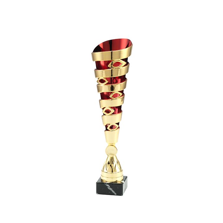 Met deze gouden trofee met rode accenten kan jij zorgen voor een unieke prijs voor jouw evenement. Personaliseer de trofee door op de voet een tekst te plaatsen die past bij jouw evenement. Kies ook uit een van de standaard (sport)afbeeldingen of ontwerp een eigen afbeelding voor op de trofee. De montage wordt gratis gedaan door Budgettrophy.