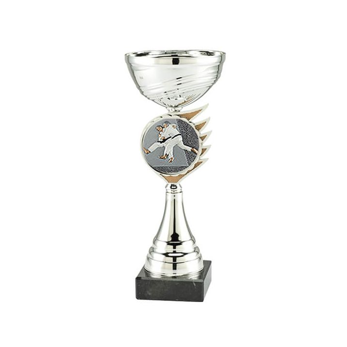 Deze trofee heeft Budgettrophy in 3 verschillende hoogtes op voorraad. De trofee is zilver met daarop een judo disc. Onderaan de trofee is ruimte voor een graveerplaatje met uw eigen tekst. Budgettrophy voert de montage van het graveerplaatje gratis voor u uit!