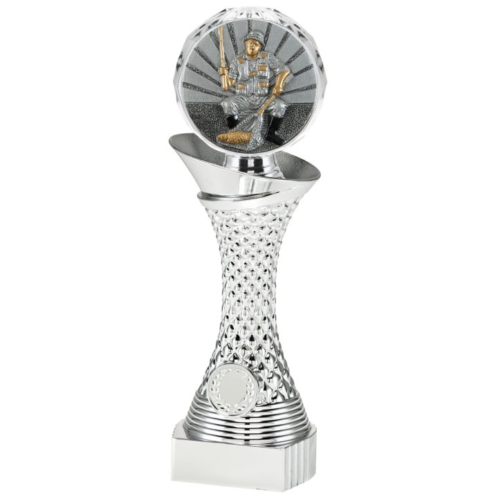 Deze trofee heeft Budgettrophy in 3 verschillende hoogtes op voorraad. De trofee is zilver met daarop een vissen disc. Onderaan de trofee is ruimte voor een (sport)afbeelding en graveerplaatje met uw eigen tekst. Budgettrophy voert de montage van de (sport)afbeelding en het graveerplaatje gratis voor u uit!