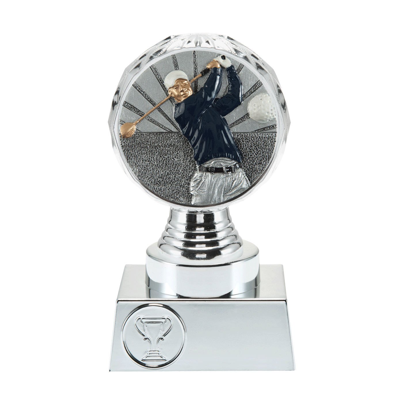 Deze trofee heeft Budgettrophy in 3 verschillende hoogtes op voorraad. De trofee is zilver met daarop een golf disc. Onderaan de trofee is ruimte voor een (sport)afbeelding en graveerplaatje met uw eigen tekst. Budgettrophy voert de montage van de (sport)afbeelding en het graveerplaatje gratis voor u uit!