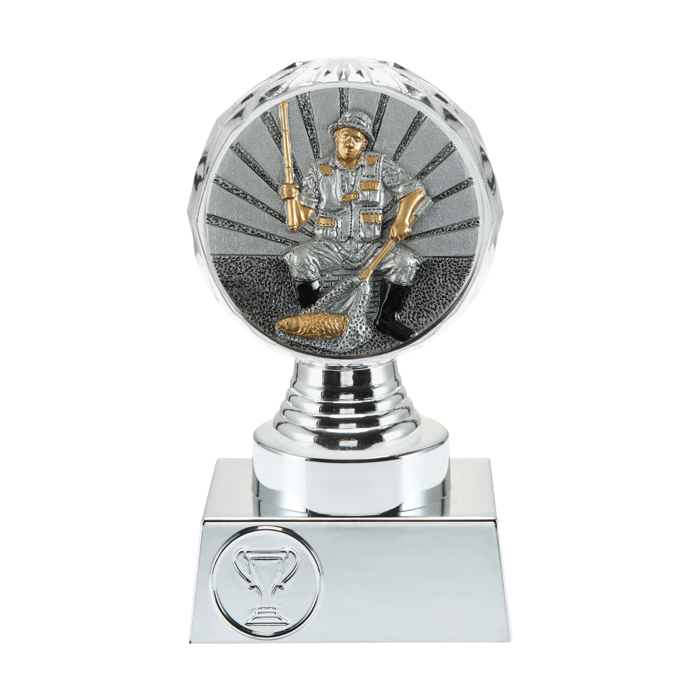 Deze trofee heeft Budgettrophy in 3 verschillende hoogtes op voorraad. De trofee is zilver met daarop een vissen disc. Onderaan de trofee is ruimte voor een (sport)afbeelding en graveerplaatje met uw eigen tekst. Budgettrophy voert de montage van de (sport)afbeelding en het graveerplaatje gratis voor u uit!