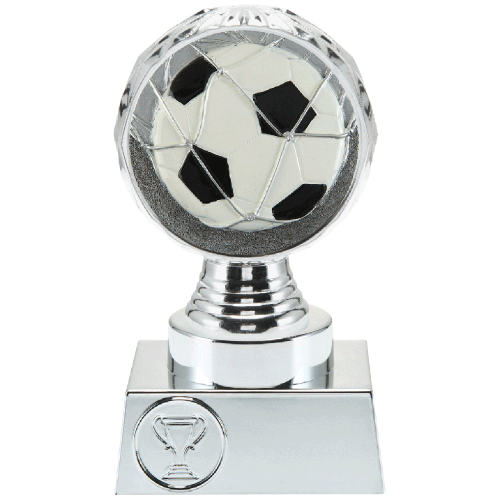 Deze trofee heeft Budgettrophy in 3 verschillende hoogtes op voorraad. De trofee is zilver met daarop een voetbal disc. Onderaan de trofee is ruimte voor een (sport)afbeelding en graveerplaatje met uw eigen tekst. Budgettrophy voert de montage van de (sport)afbeelding en het graveerplaatje gratis voor u uit!