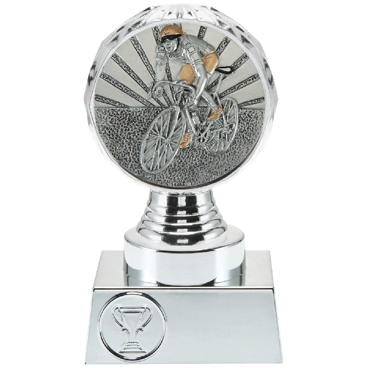 Deze trofee heeft Budgettrophy in 3 verschillende hoogtes op voorraad. De trofee is zilver met daarop een wielrennen disc. Onderaan de trofee is ruimte voor een (sport)afbeelding en graveerplaatje met uw eigen tekst. Budgettrophy voert de montage van de (sport)afbeelding en het graveerplaatje gratis voor u uit!