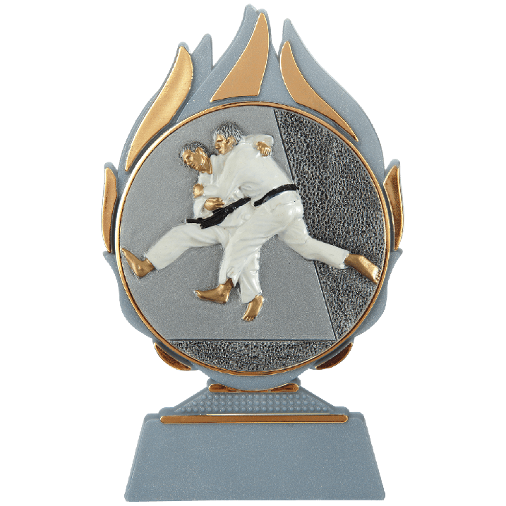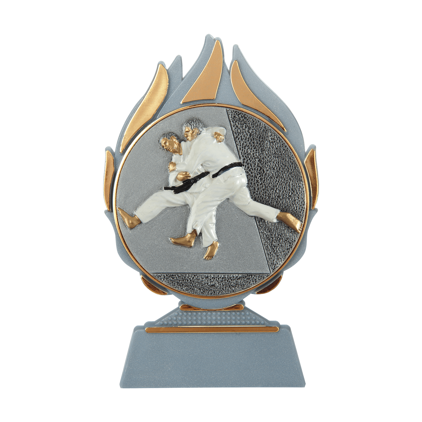Deze trofee heeft Budgettrophy in 3 verschillende kleuren op voorraad. De trofee is grijs met gouden details met daarop een judo disc. Onderaan de trofee is ruimte voor een graveerplaatje met uw eigen tekst. Budgettrophy voert de montage van het graveerplaatje gratis voor u uit!