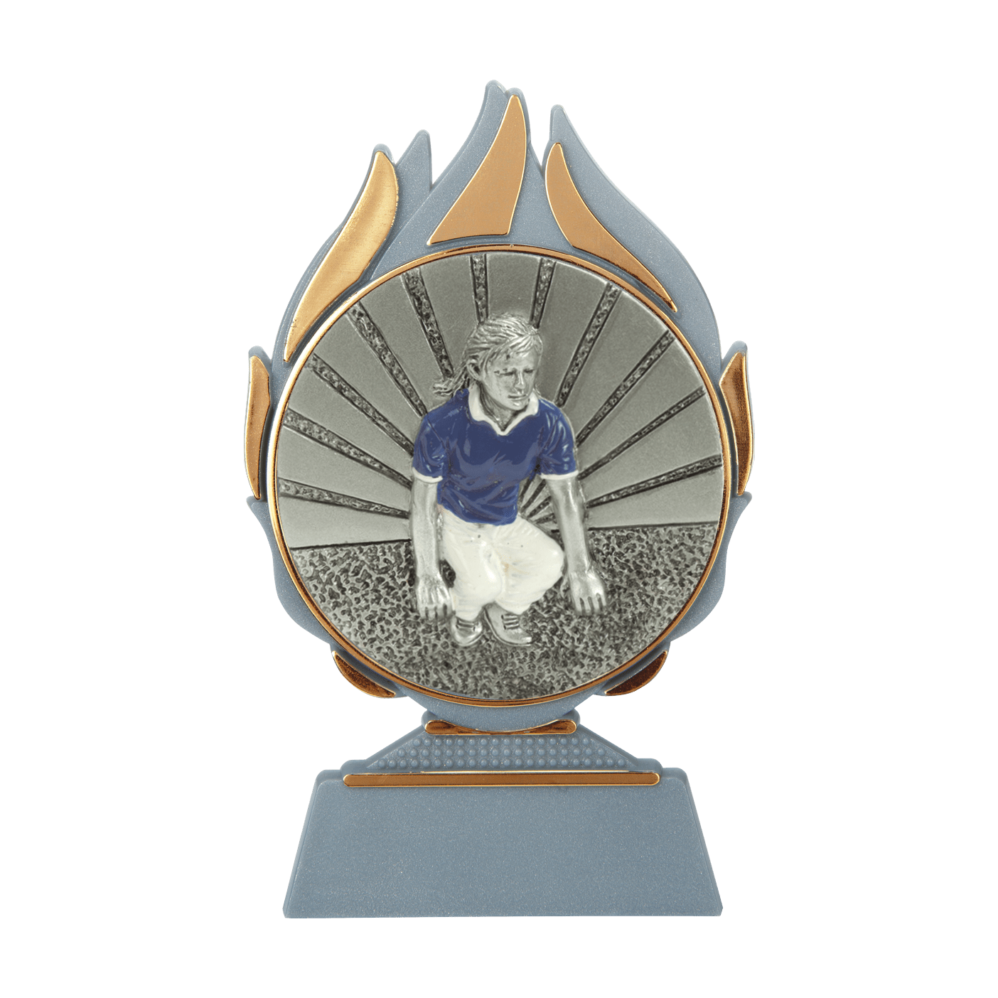 Deze trofee heeft Budgettrophy in 3 verschillende kleuren op voorraad. De trofee is grijs met gouden details met daarop een petanque disc. Onderaan de trofee is ruimte voor een graveerplaatje met uw eigen tekst. Budgettrophy voert de montage van het graveerplaatje gratis voor u uit!