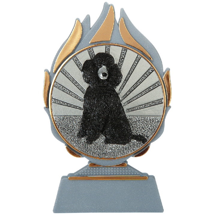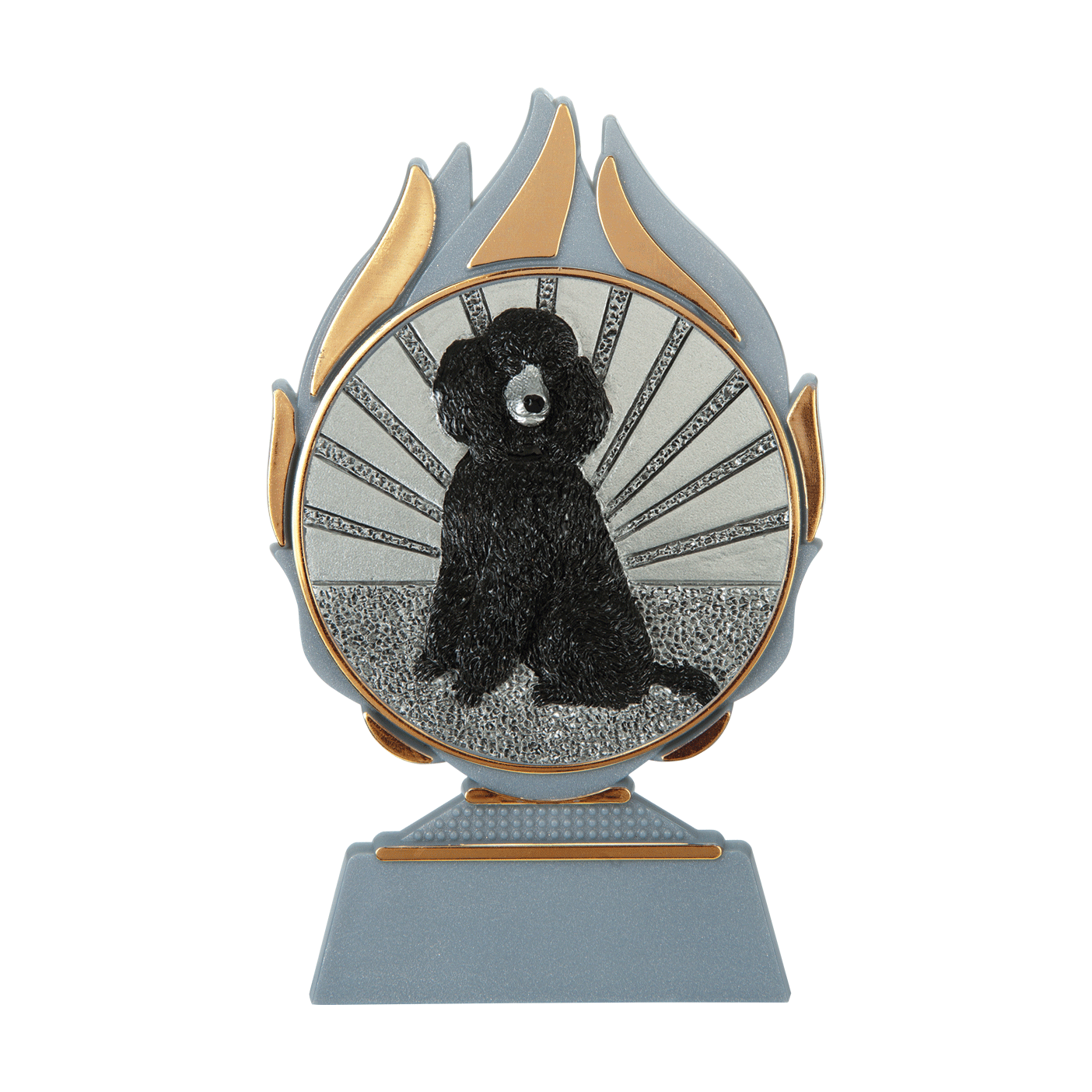 Deze trofee heeft Budgettrophy in 3 verschillende kleuren op voorraad. De trofee is grijs met gouden details met daarop een poedelprijs disc. Onderaan de trofee is ruimte voor een graveerplaatje met uw eigen tekst. Budgettrophy voert de montage van het graveerplaatje gratis voor u uit!