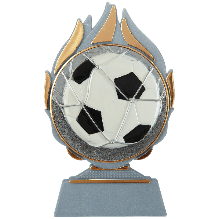 Deze trofee heeft Budgettrophy in 3 verschillende kleuren op voorraad. De trofee is grijs met gouden details met daarop een voetbal disc. Onderaan de trofee is ruimte voor een graveerplaatje met uw eigen tekst. Budgettrophy voert de montage van het graveerplaatje gratis voor u uit!