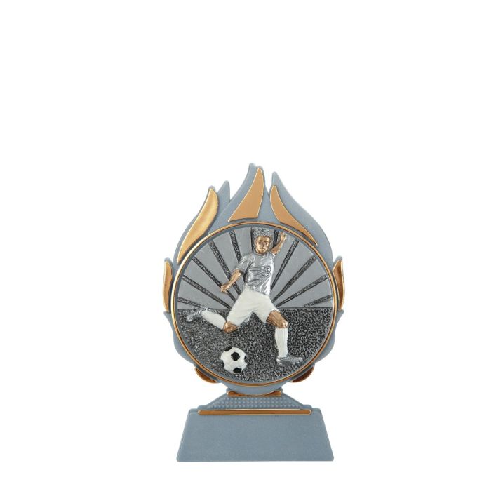 Deze trofee heeft Budgettrophy in 3 verschillende kleuren op voorraad. De trofee is grijs met gouden details met daarop een voetbal disc. Onderaan de trofee is ruimte voor een tekstplaatje met uw eigen tekst. Budgettrophy voert de montage van het tekstplaatje gratis voor u uit!